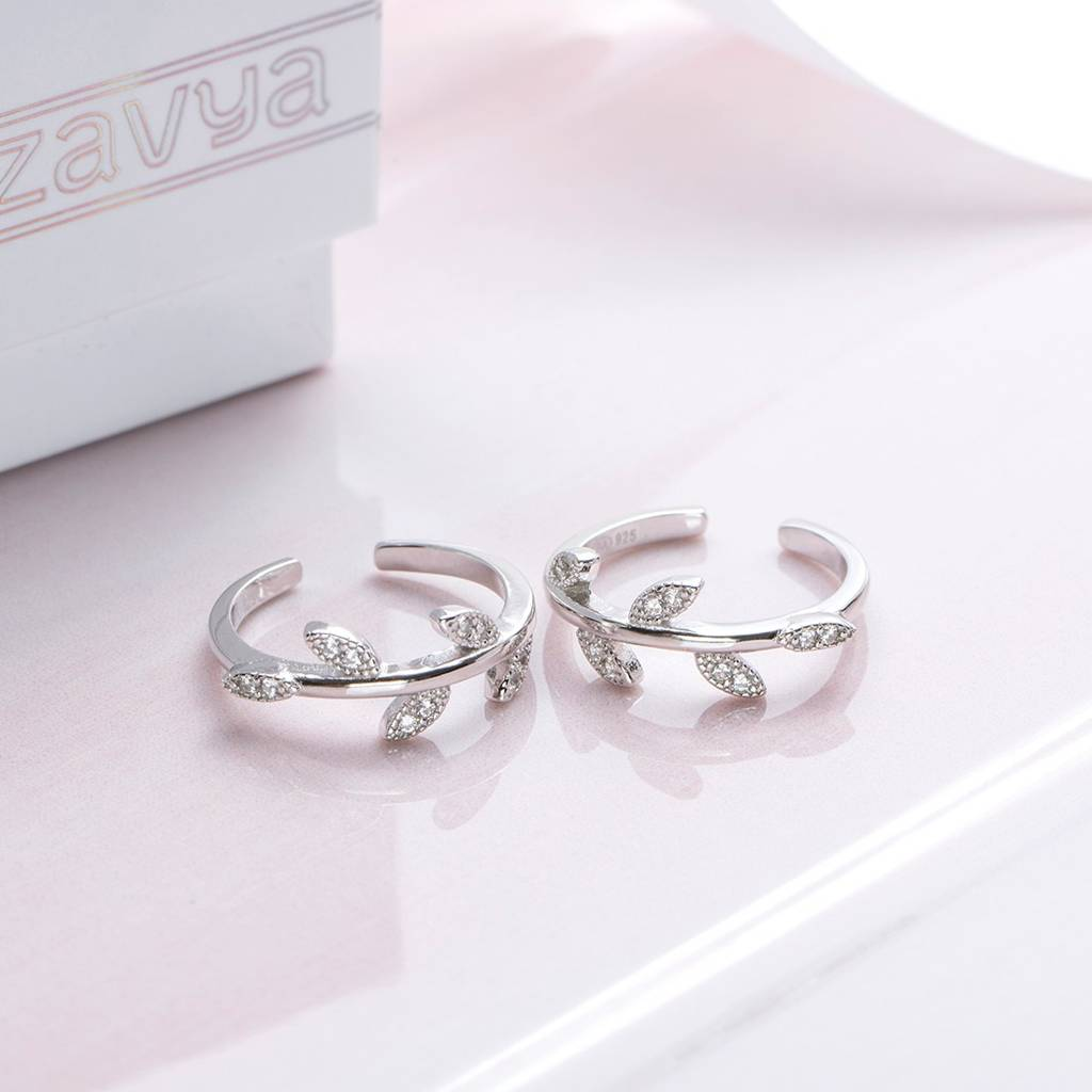 5. Zavya Leaf CZ Rhodium Plated Sterling Silver Toe Ring