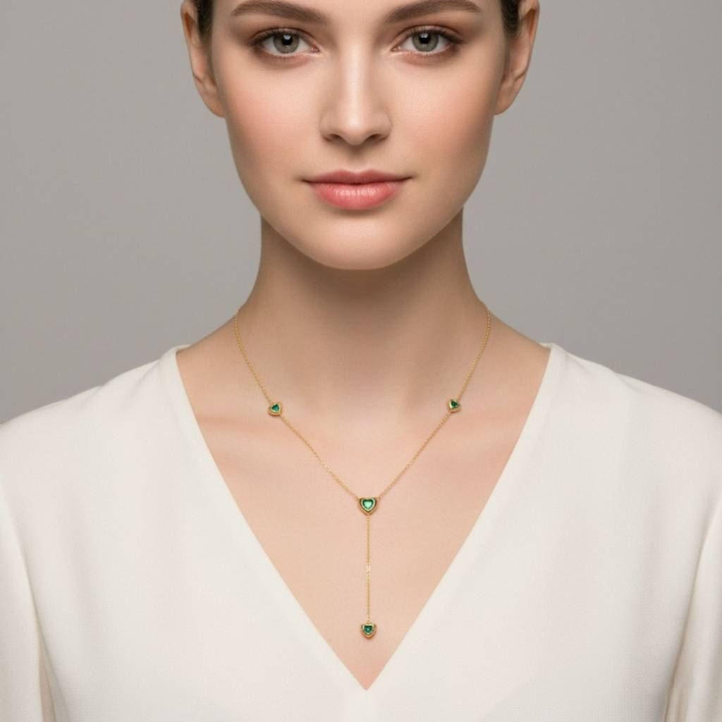 5. 18K Gold Plated Emerald Heart Drop Necklace