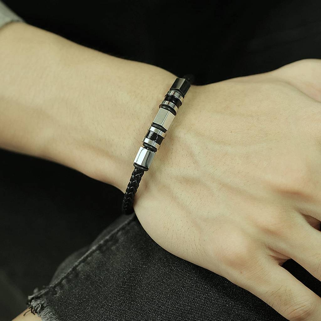 4. Men’s Barrel Braid Leather Bracelet Onyx Black