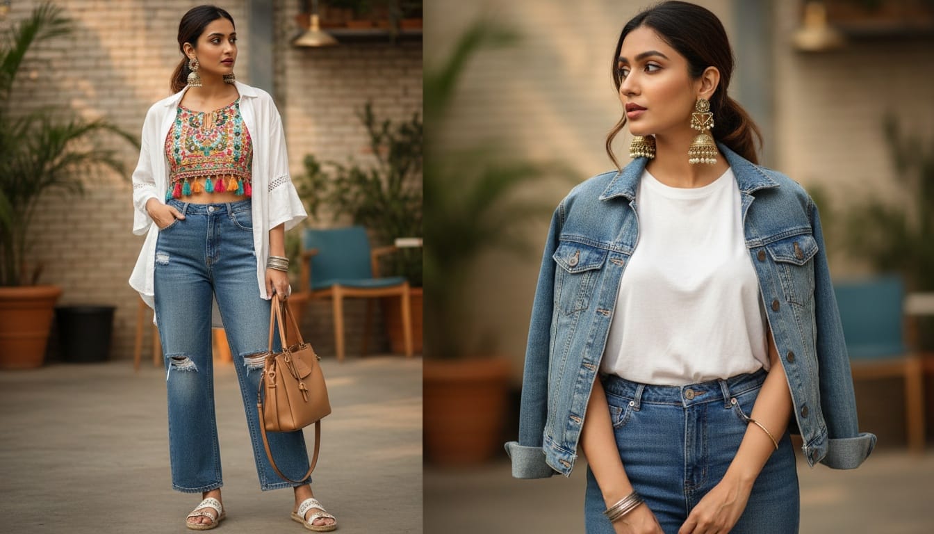 The "Jeans & Jhumka" trend is more than just a fashion statement in India right now, it's a cultural mood. It's that perfect sweet spot where your modern ambition meets your traditional roots. Whether you're rushing to a college lecture, heading to a creative workspace, or meeting friends for a chai tapri gossip session, this fusion look is your ultimate savior.