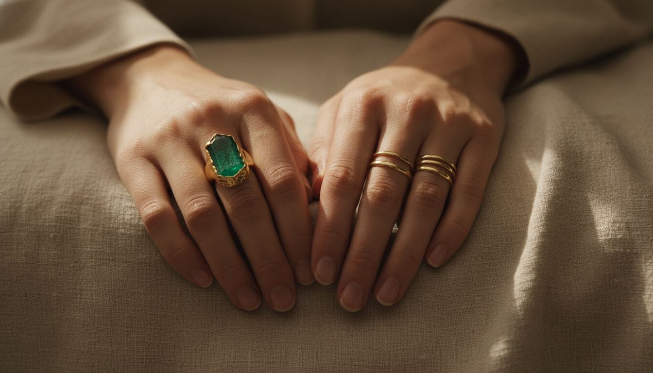 The 1 3 5 Ring Rule is a styling formula designed to create a balanced but asymmetrical look across both your hands. The rule suggests that you should wear one statement ring on one hand and stack three simpler rings on the other hand. This brings the total number of rings to five. This specific arrangement prevents your hands from looking cluttered while ensuring your jewellery makes a noticeable impact. It creates a modern vibe that looks curated rather than random.