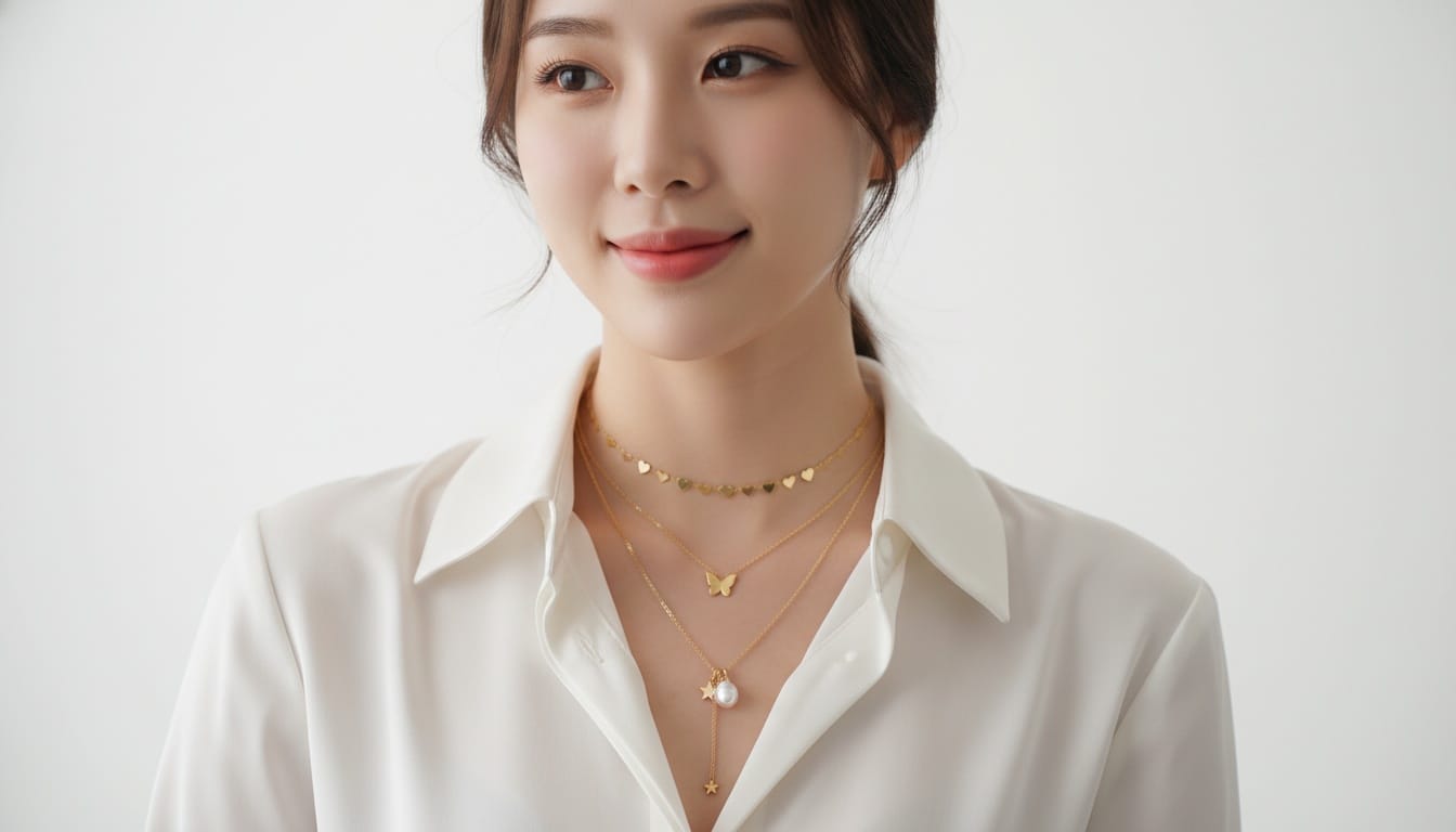 Layering necklaces is not just a trend; it is a fundamental styling technique that has been perfected in Korean fashion. It is one of the biggest and most enduring Korean jewelry trends, offering endless possibilities for personal expression.
