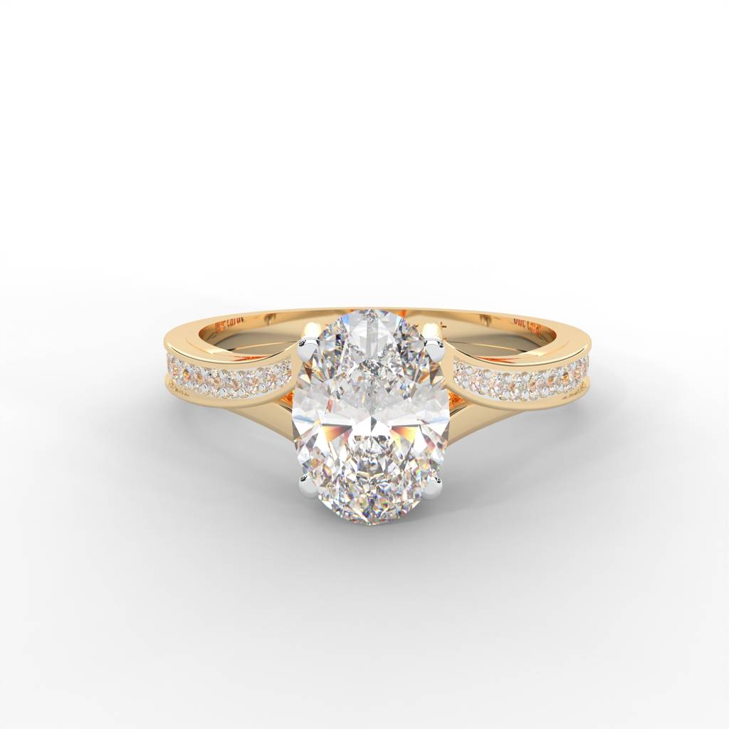 1.03 Carat Oval Moissanite Solitaire With Side Accents Engagement Ring In 14K Yellow Gold Plated : SSRL-0002-Y-8