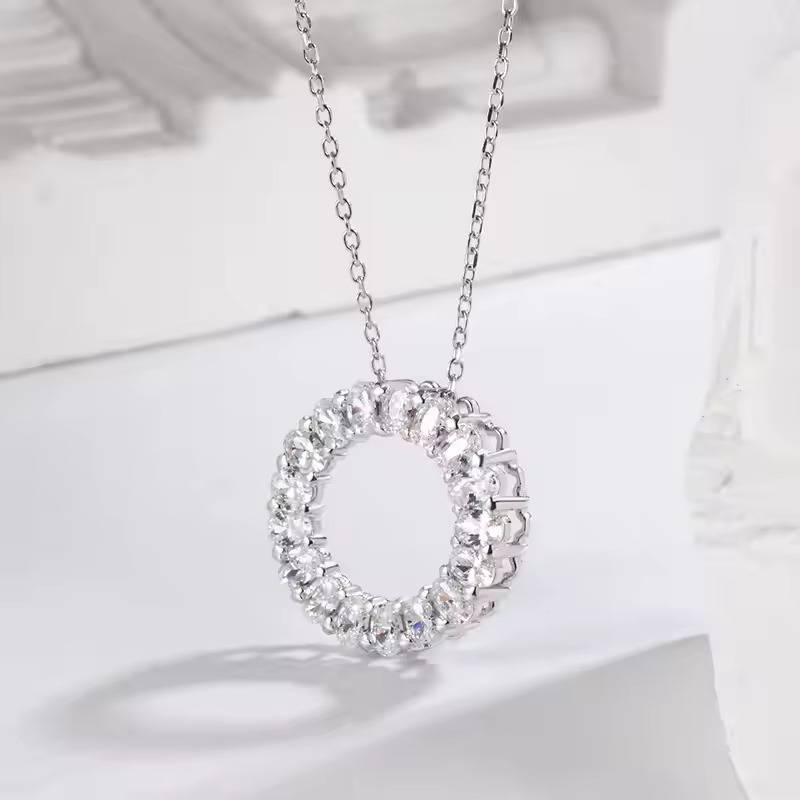 14K White Gold Plated Oval Cut Moissanite Circular Pendant Necklace : CJNK25