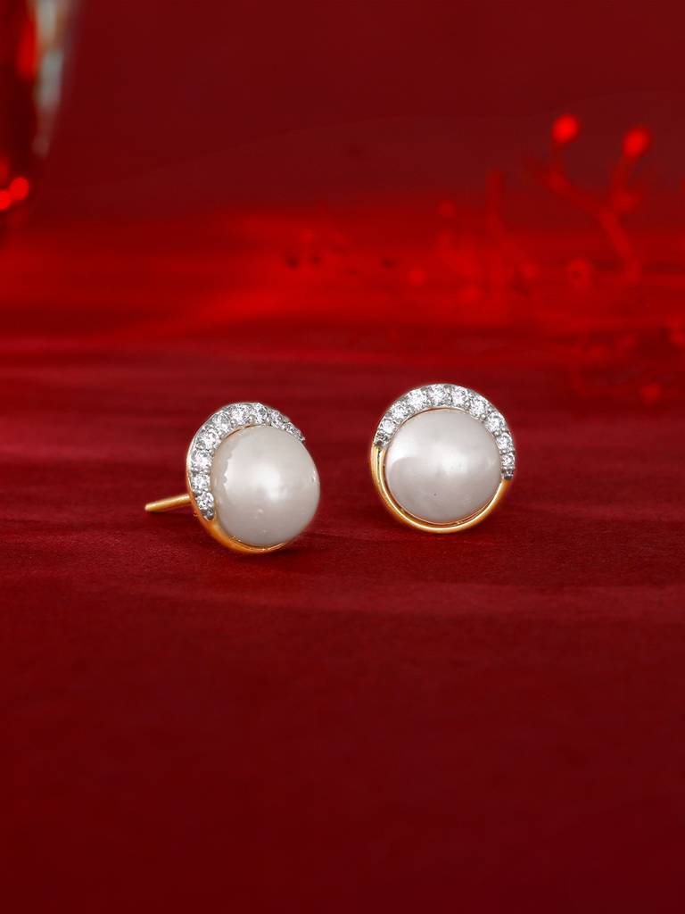 Heer By GIVA14K Yellow Gold Graceful Pearl Diamond Studs