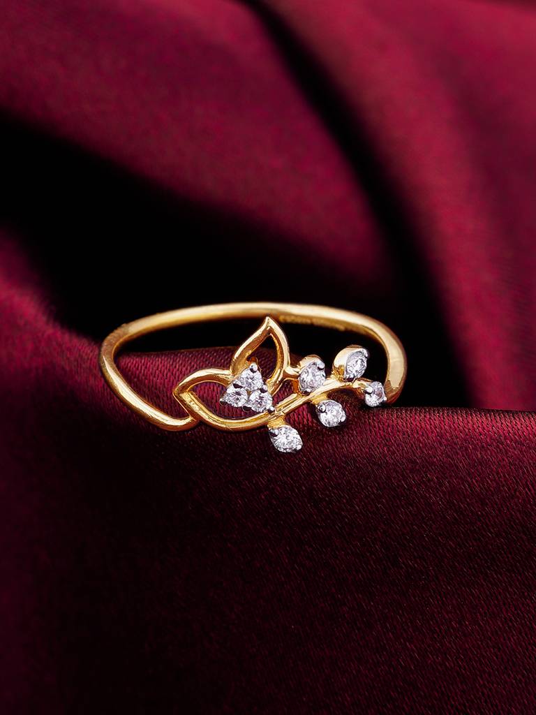 Heer By GIVA14K Yellow Gold Magnificent Petals Diamond Ring (Size 12)