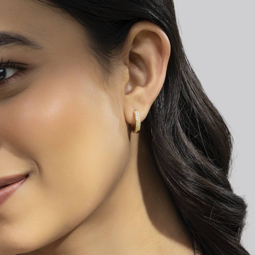 14K Gold Plated Double Half Hoops With Zircons| Lightweight, Daily Wear Earrings