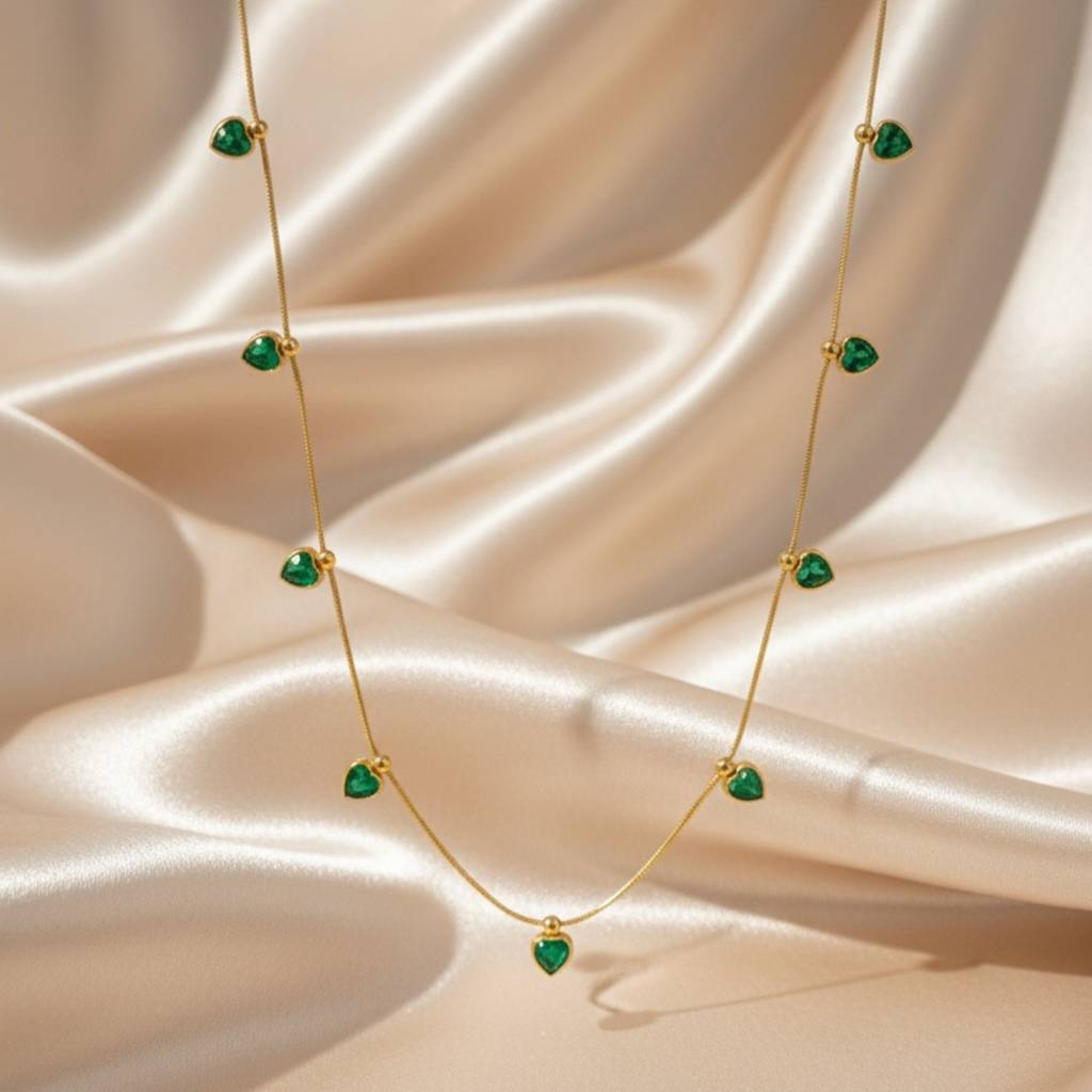 RACHIVA18K Gold Plated Green Heart Charm Necklace-Rjfspn20