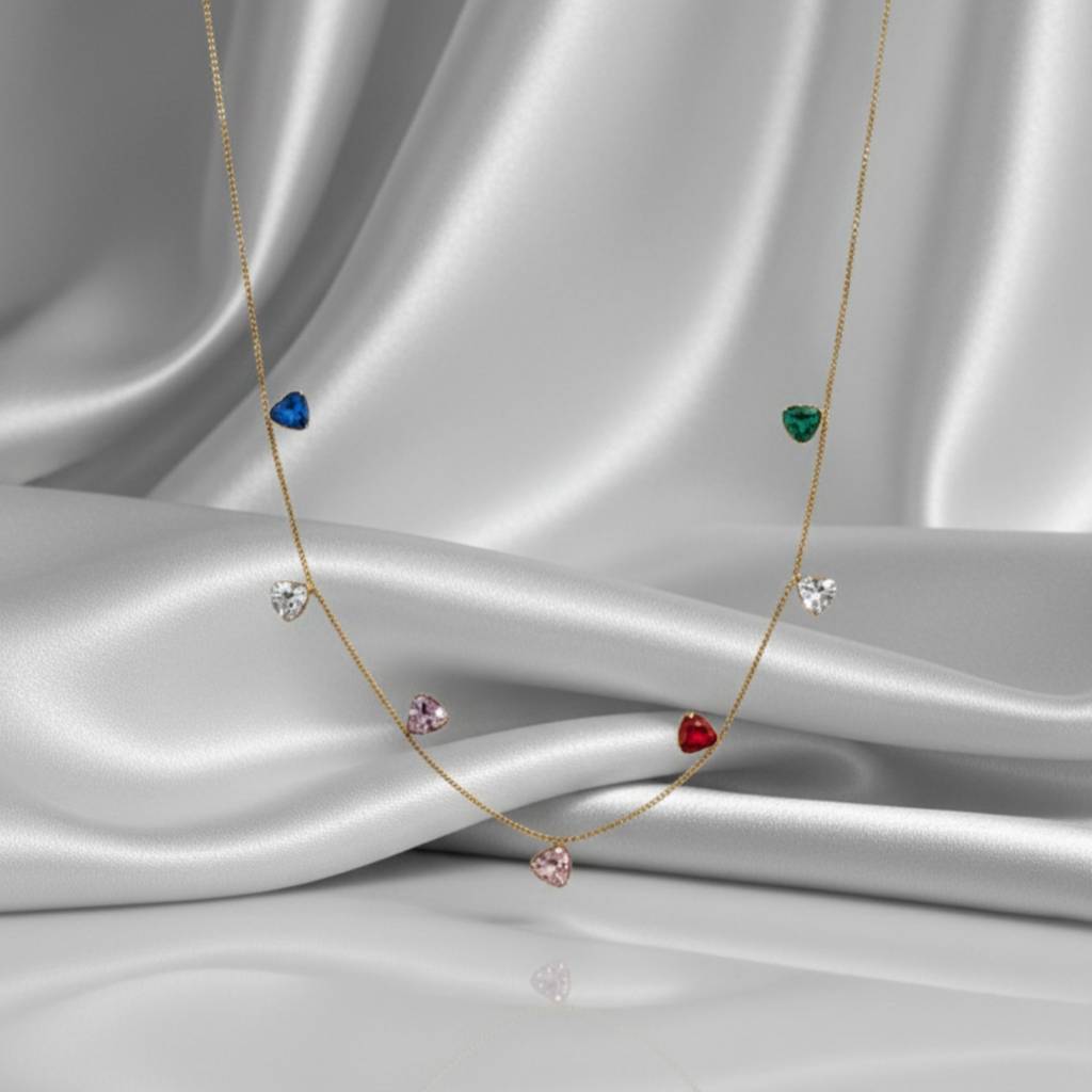 18K Gold Plated Multicolour Heart Station Necklace : RJFSPN15