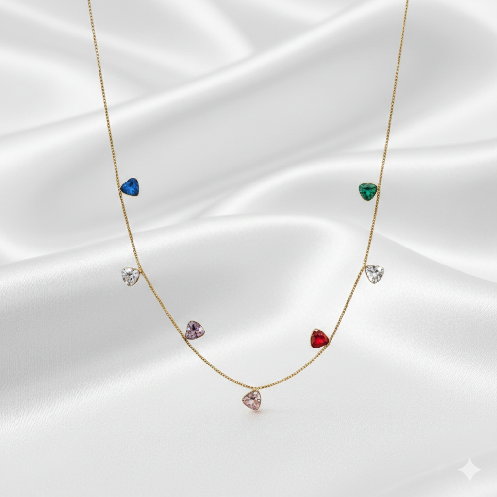 RACHIVA18K Gold Plated Multicolour Heart Station Necklace
