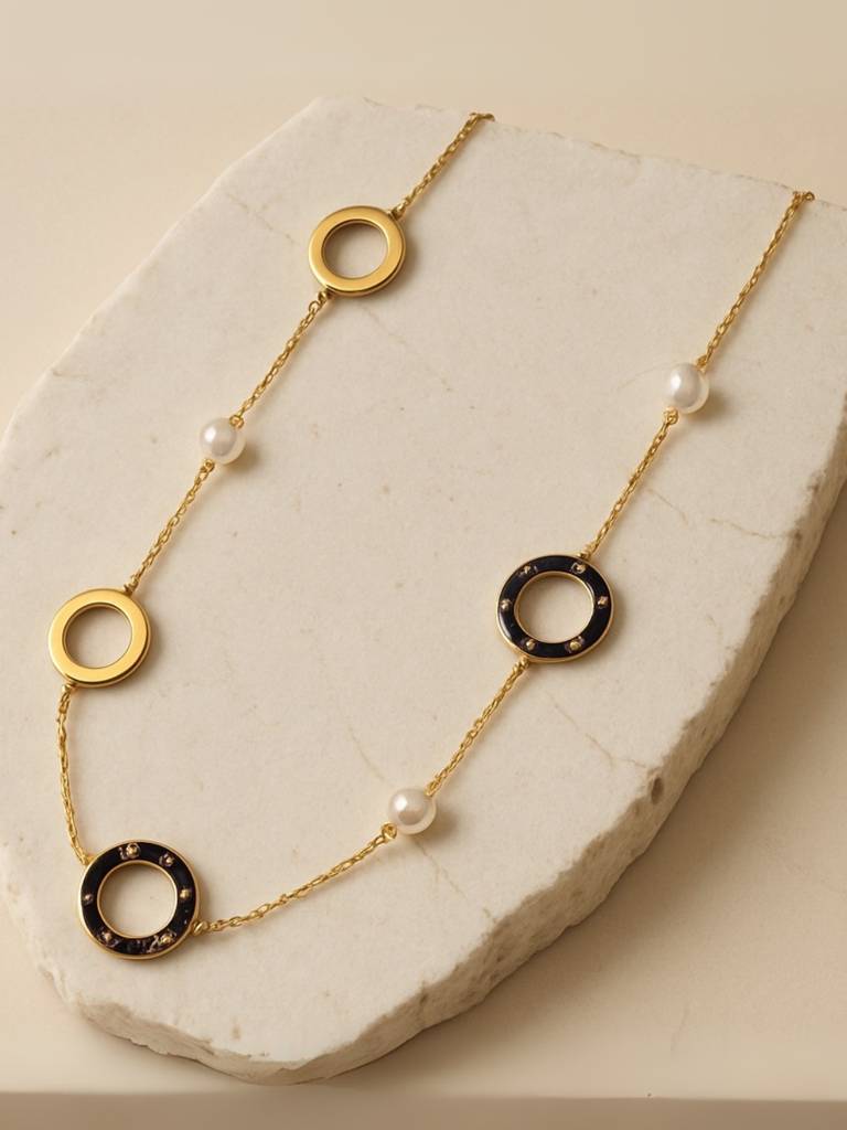 18K Gold Plated Pearl & Circular Motif Necklace €“ Anti Tarnish, Everyday : ATC628CMPN