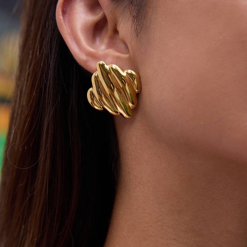 NAITRA18K Gold Plated Sculpted Shell Stud Earrings For Women
