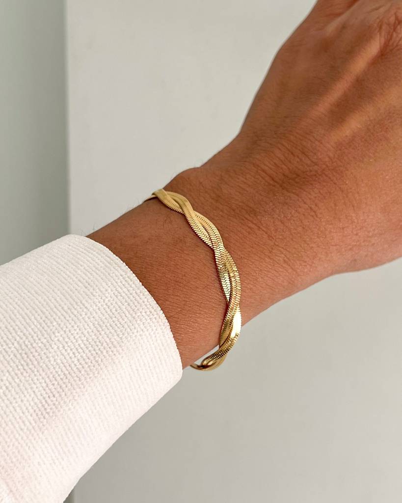 Bloome18K Gold Plated Twisted Double Layer Herringbone Bracelet (8 Inches)