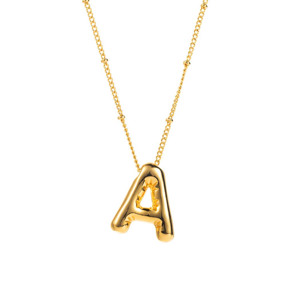 18K Gold Plated Waterproof Antitarnish Balloon Design Initial Letter Pendant Necklace : AMG0624PN3178GA