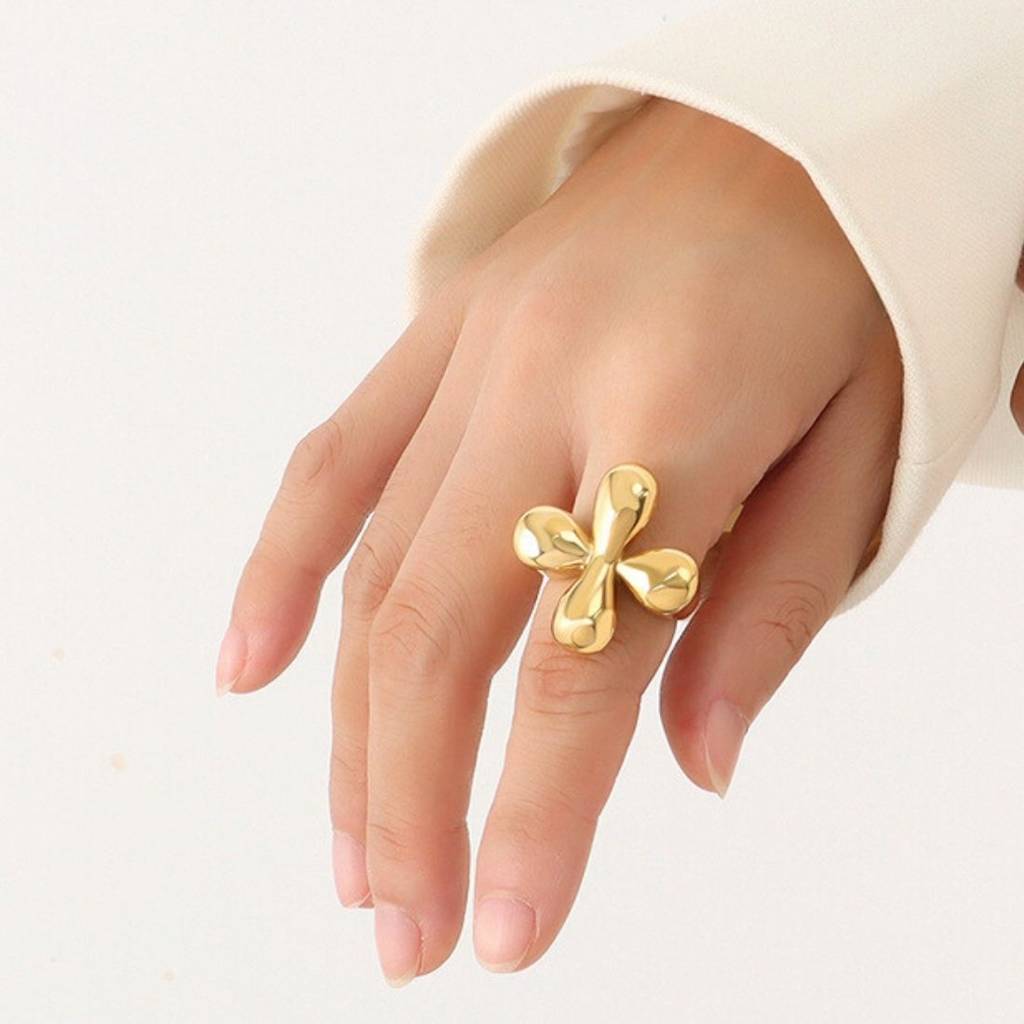18K Gold Plated Waterproof Antitarnish Titanium Steel Floral Statement Ring : AFT0924R068G6