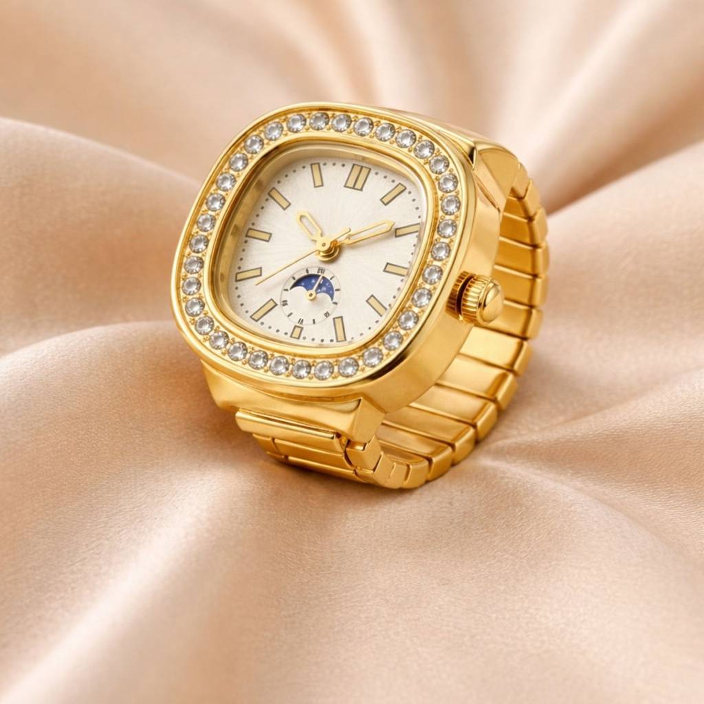 RACHIVA18K Gold Plated Zircon Embellished Square Ring Watch (Adjustable)
