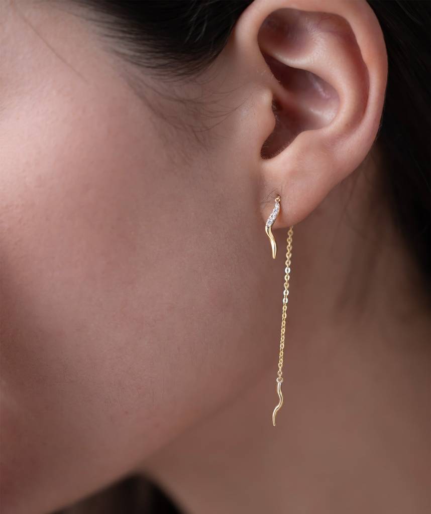 18K Gold Vermeil Twisted Sparkle Thread Earrings : KET0007-Gold