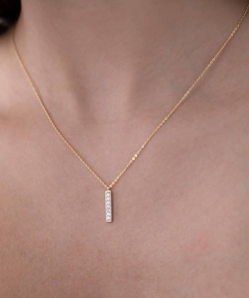 18K Gold Vermeil Vertical Diamond Bar Necklace : KNC0075