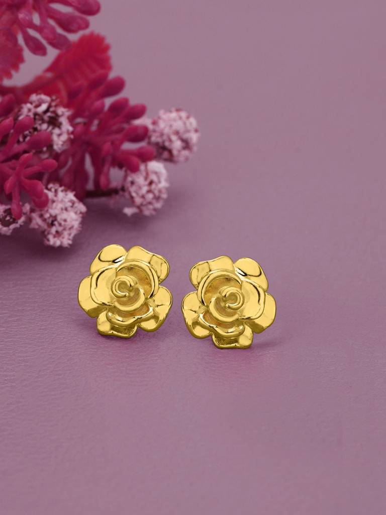 18Kt Gold Plated Bold Rose Stud Earring : FJE5421