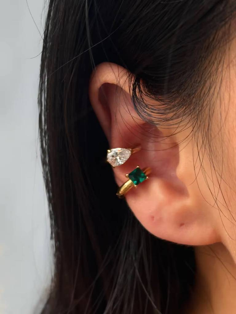 18Kt Gold Plated Emerald Square Zircon Cuff Earrings, Lopa (No Piercing Required) : INLOPA