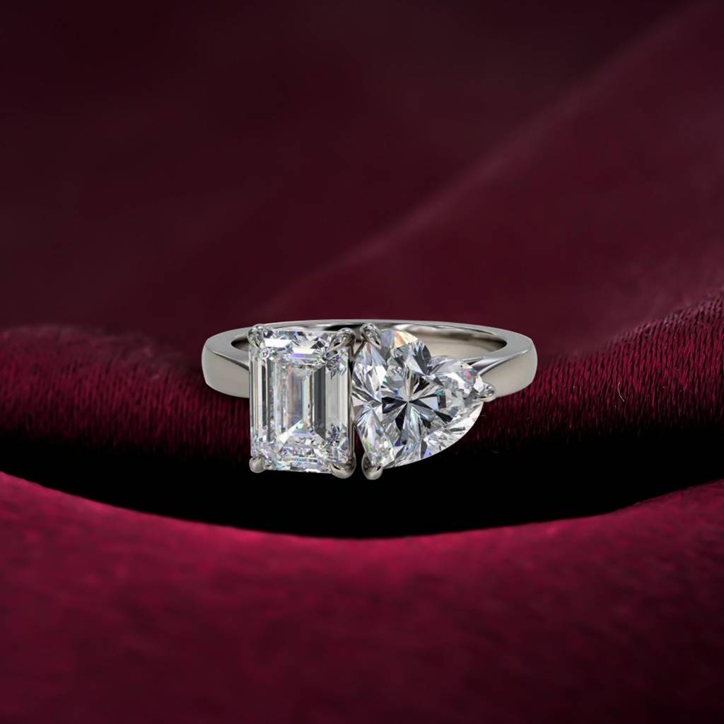 ZALKARI2 Carat Romantic Emerald & Heart Moissanite Ring For Women