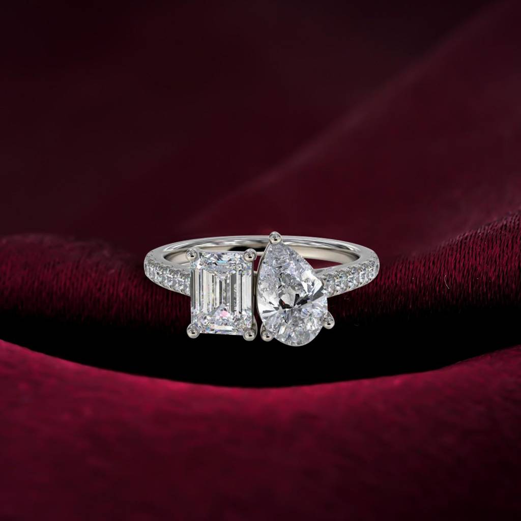 ZALKARI2.10 Carat Emerald & Pear Moissanite Dual Stone Accent Ring