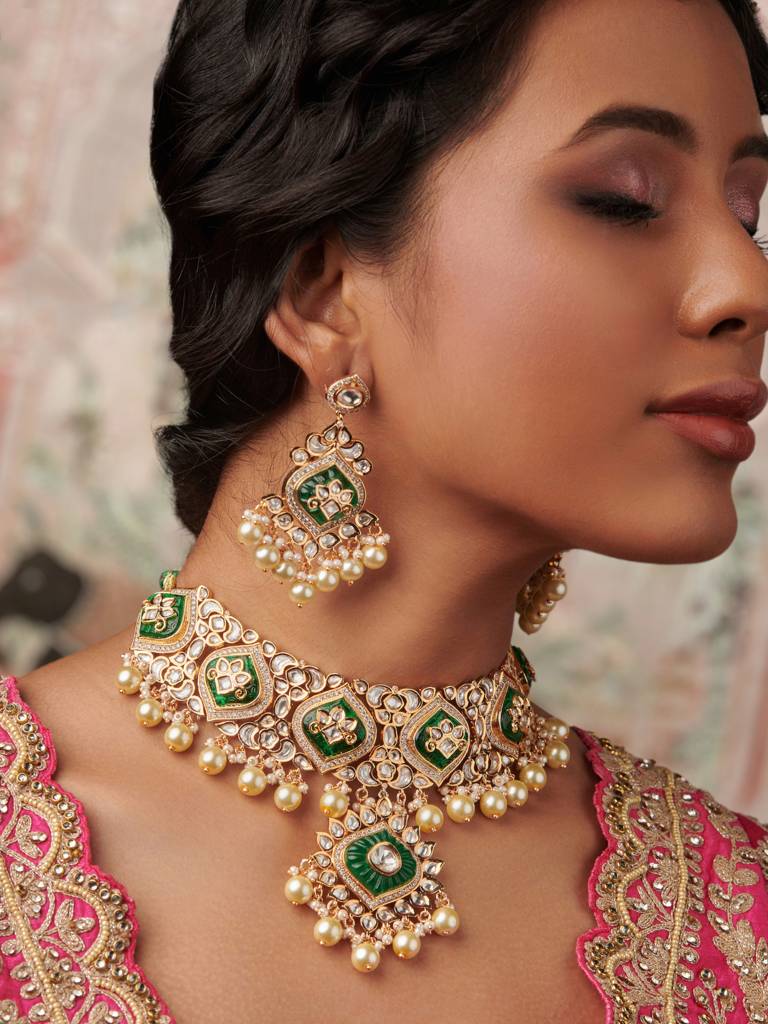 22 Kt Gold-Plated Kundan Elegance Bridal Necklace : WFSE81
