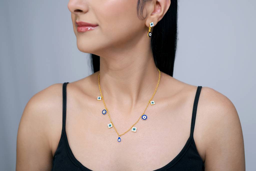 22kt Gold Plated Enamel Evil Eye Multi Charm Necklace