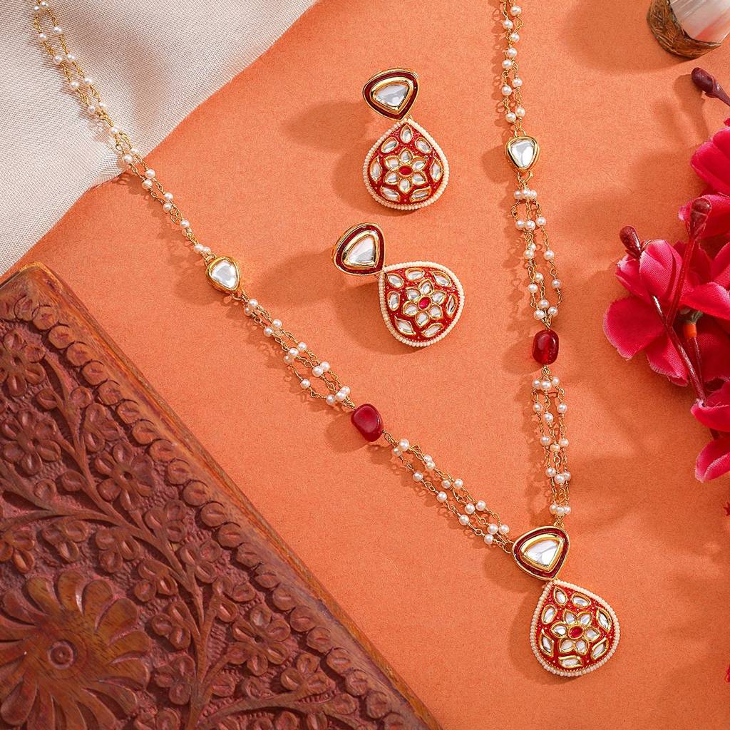 Aarsee Official22Kt Gold-Plated Jadau Kundan Pearl Chain Necklace Set