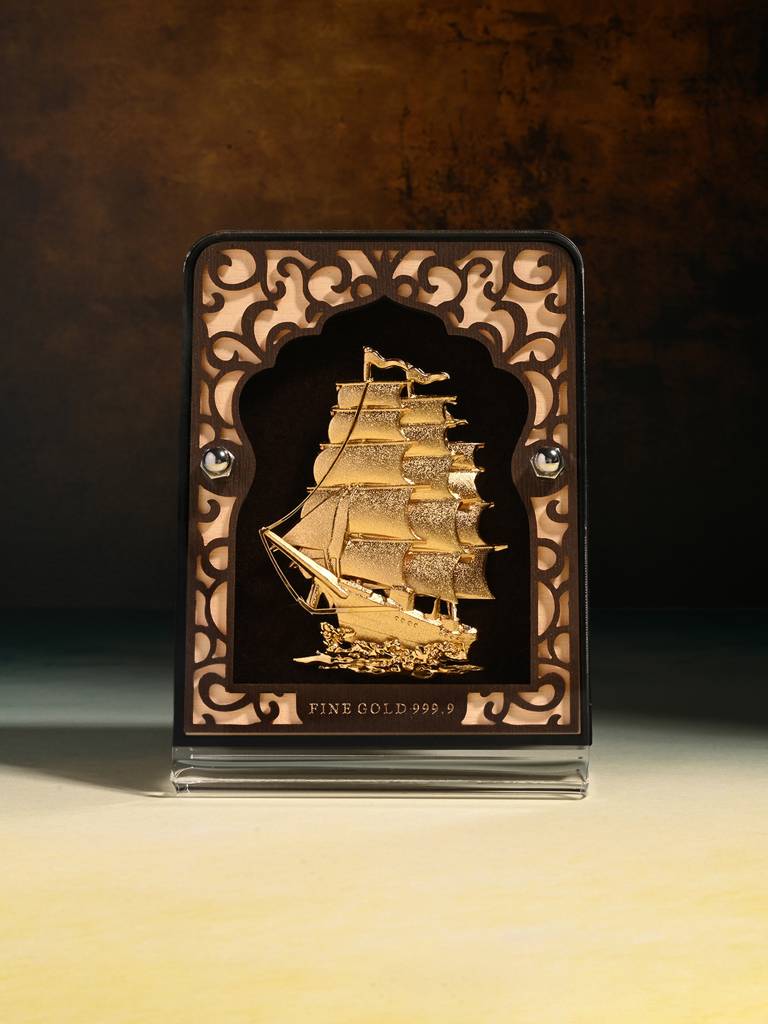 24K Gold Foil Sailing Ship Frame : DRGFT367