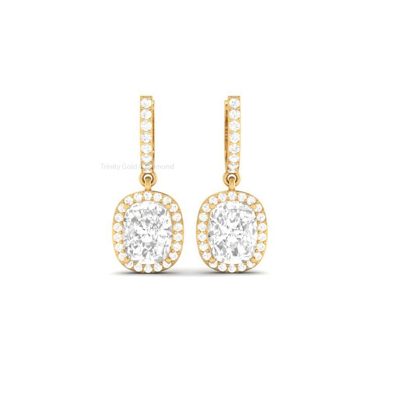 3.0Ct Cushion Halo Moissanite Drop Earrings In 14Kt Gold Over Sterling Silver : TGDE-32
