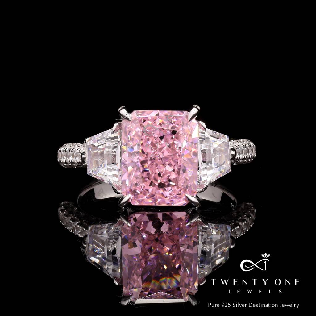Twenty One Jewels5 Carat Premium Pink Emerald Cut Diamond Dazzle Ring On Pure 925 Silver