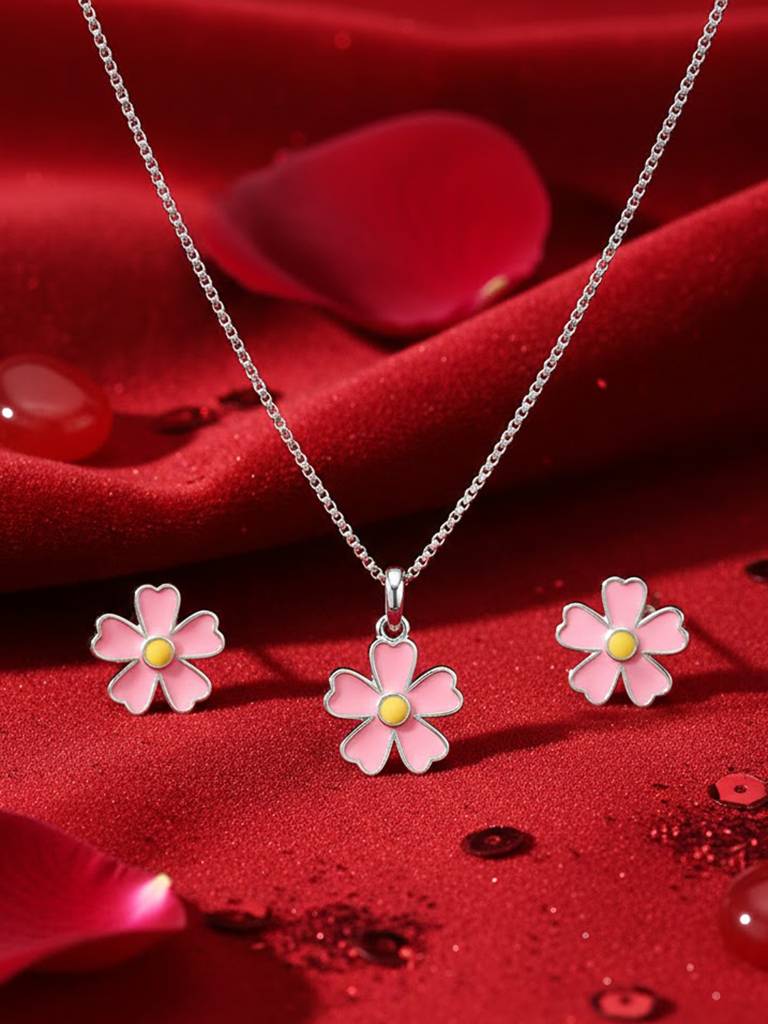 925 Siller925 Pure Silver Floral Chain Pendant Set-Cps1027