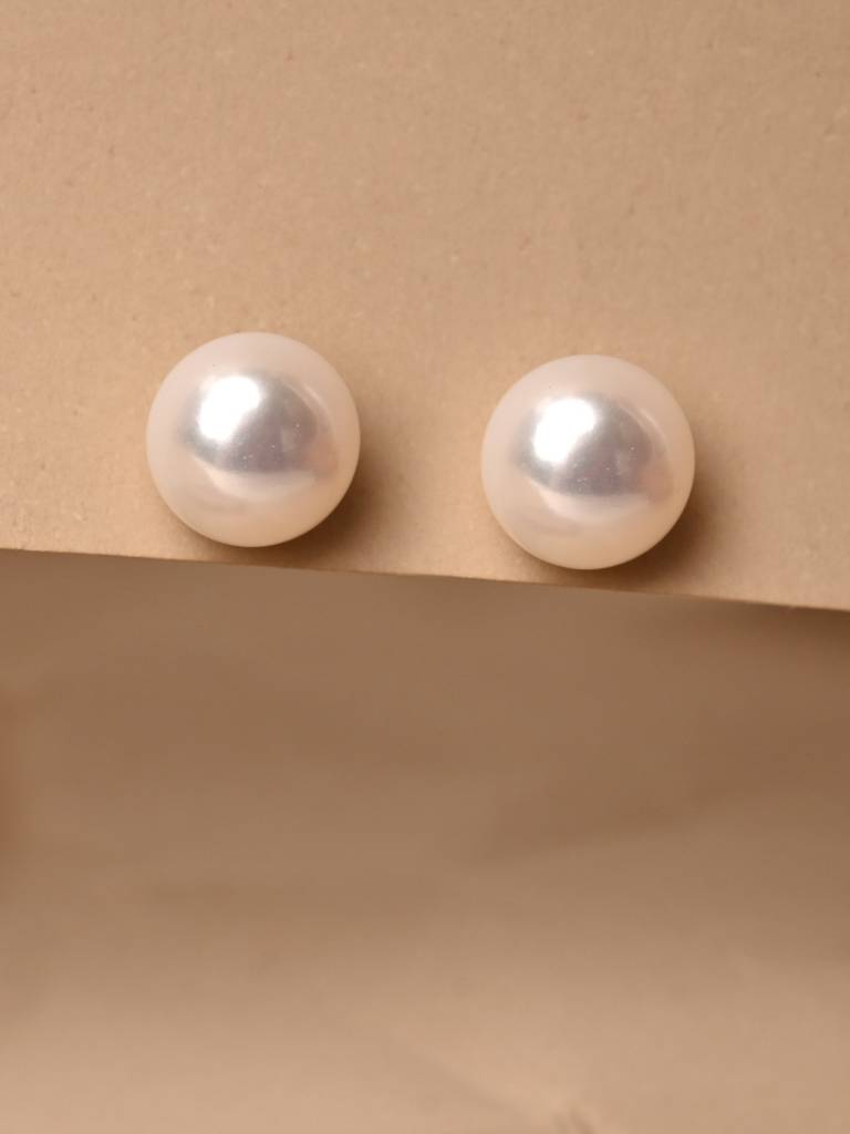 925 Pure Sterling Silver Rhodium Plated Real White Pearl 7 Mm Studs Earrings Gift For Women & Girls : CSE16_7