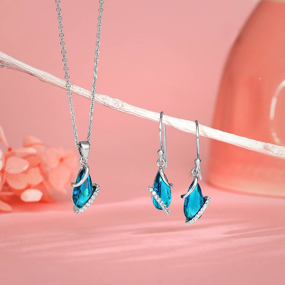 925 Silver Blue Night Set : ER02835PD02541