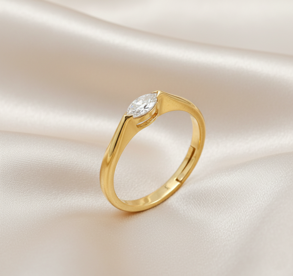 Love925925 Silver Elegant Gold-Plated Marquise Solitaire Ring (Adjustable)