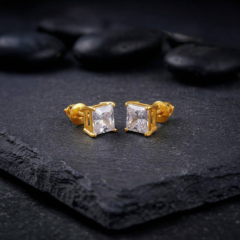 925 Silver Golden Classy Zirconia Stud For Him|Studs To Gift Men & Boys|With Certificate Of Authenticity And 925 Sta : MER0114