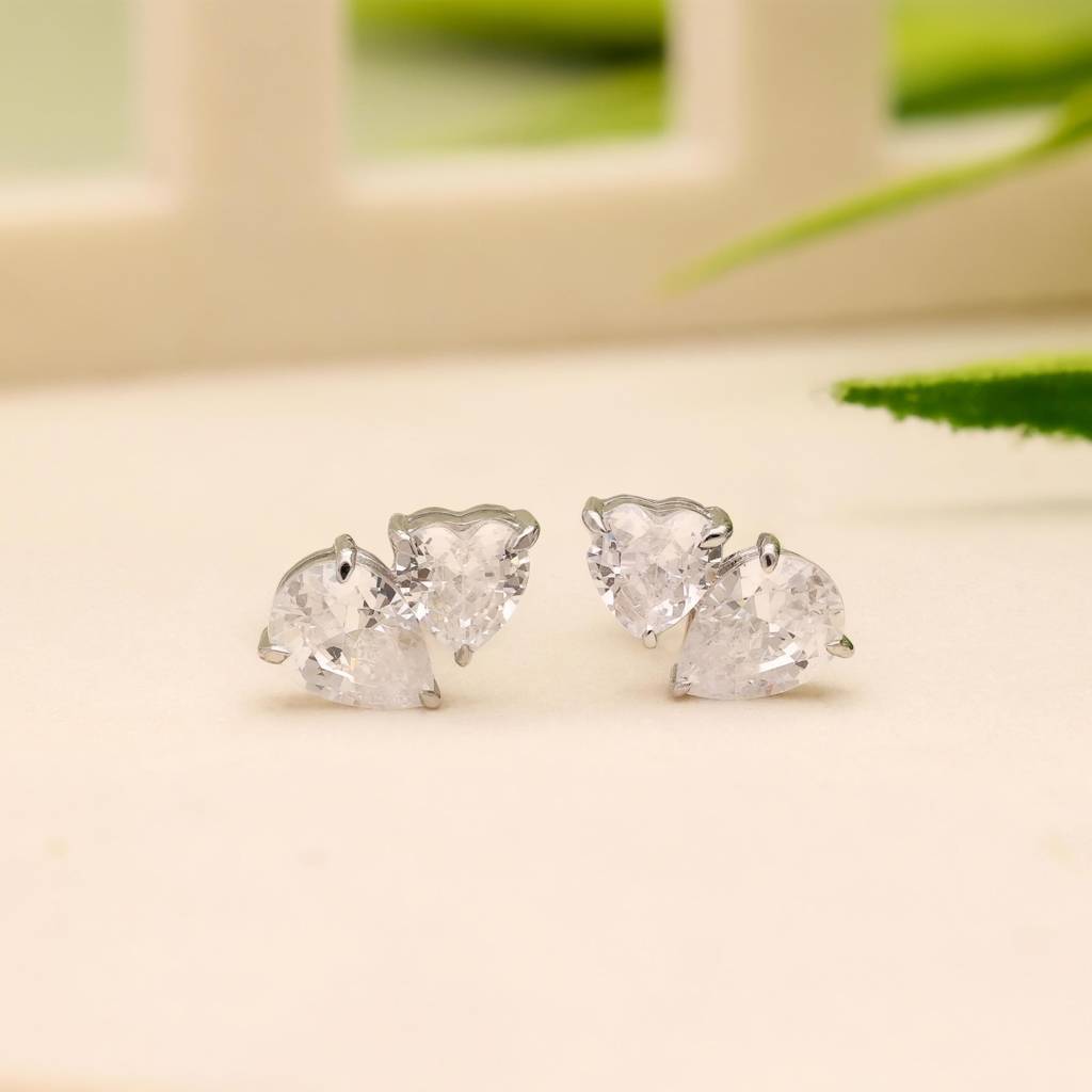 925 Silver Heart & Pear Cz Two Stone Stud Earrings : SE_000527
