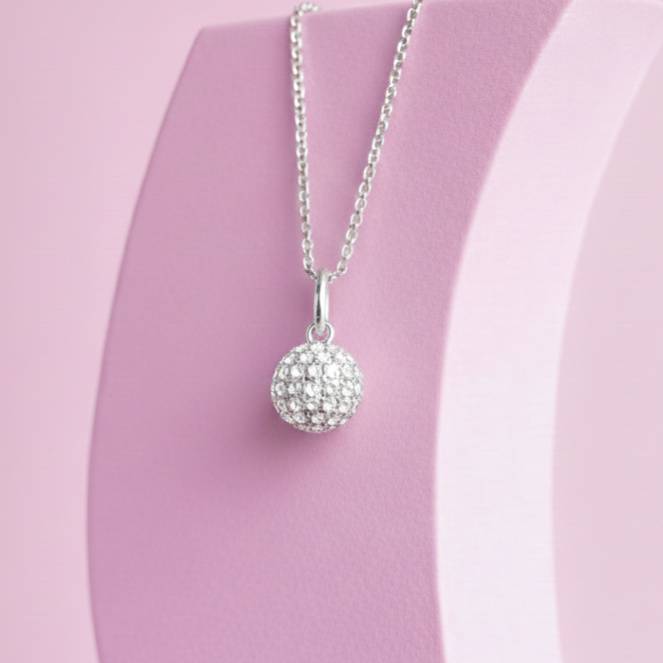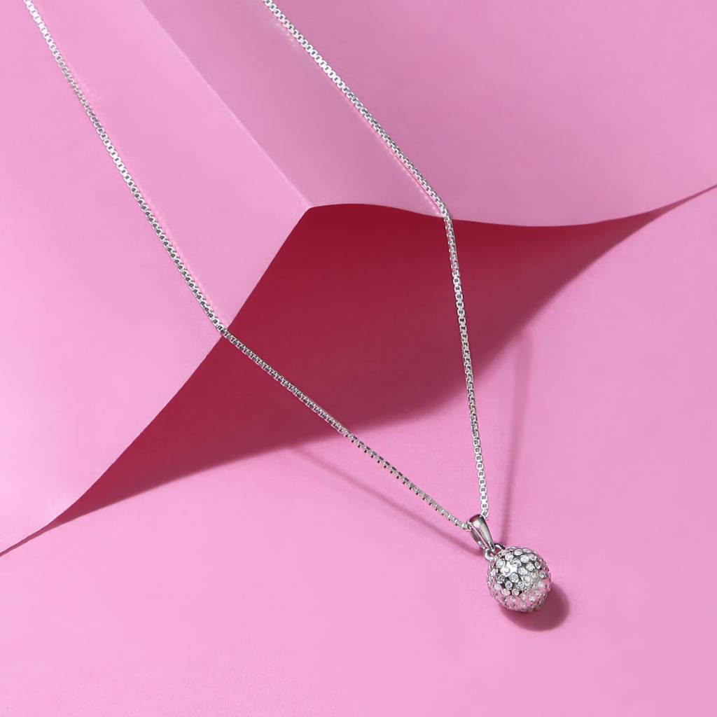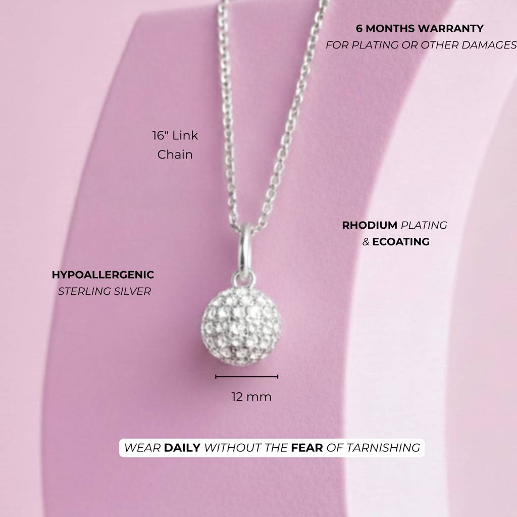 ShimmerTots925 Silver Hypoallergenic Disco Ball Cz Studded Pendant With Box Chain