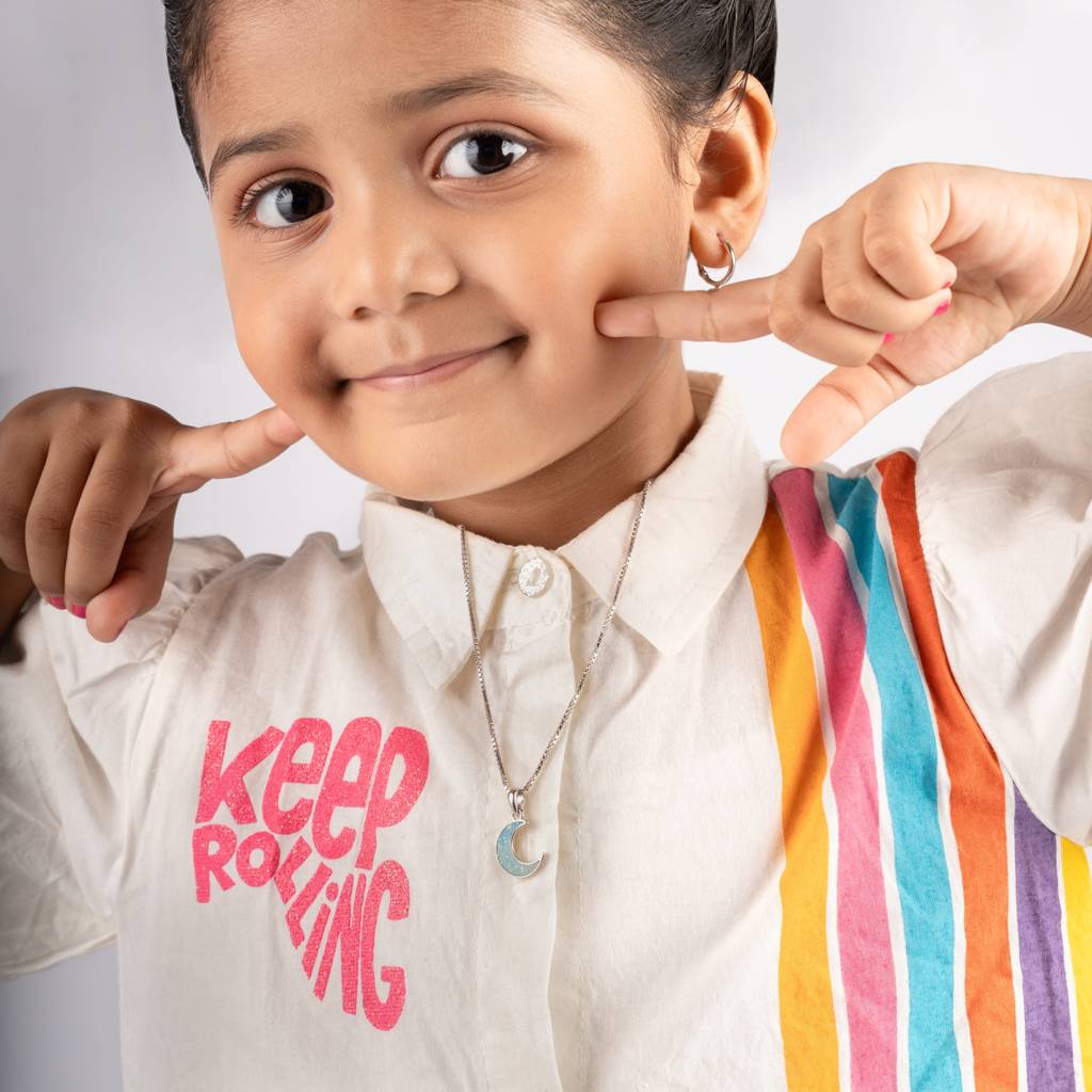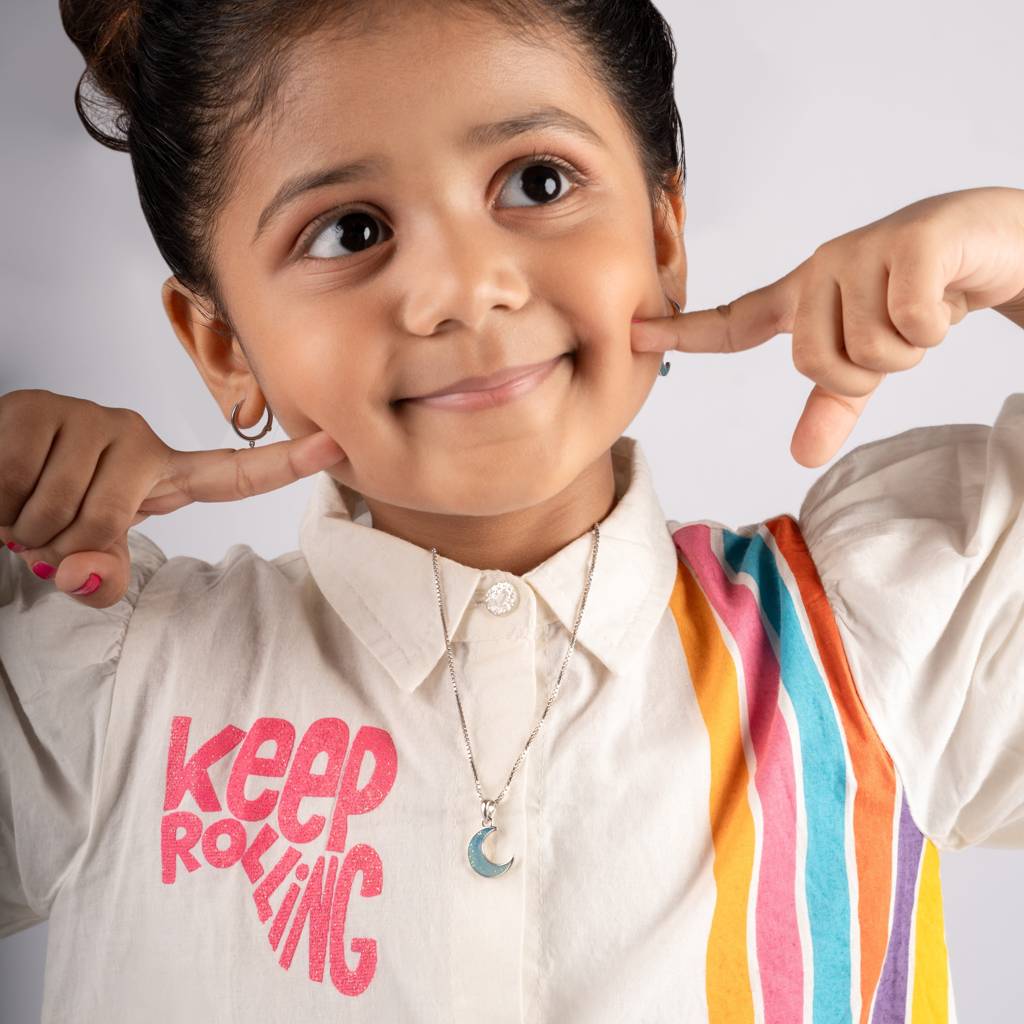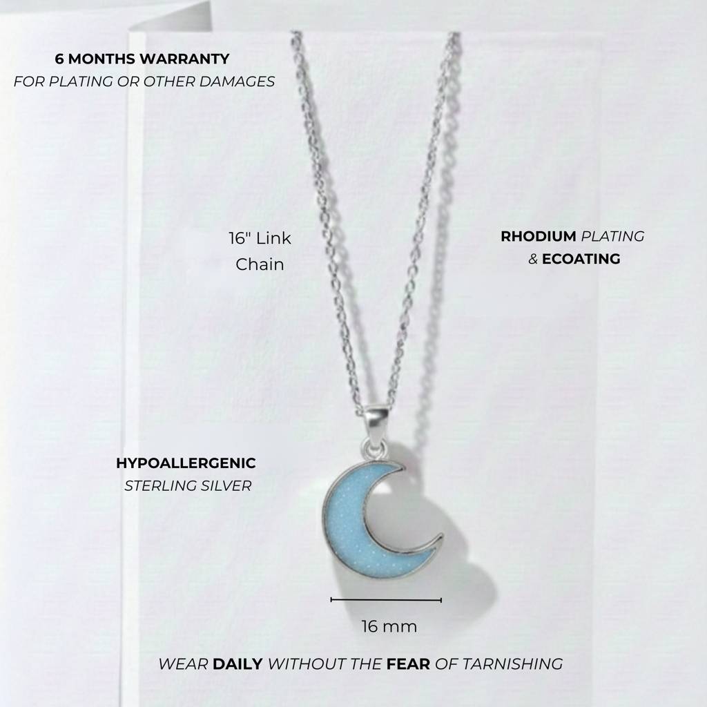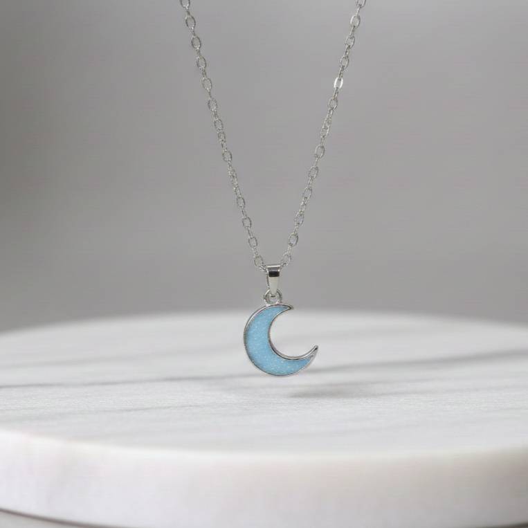 ShimmerTots925 Silver Hypoallergenic Glitter Blue Moon Pendant With Box Chain