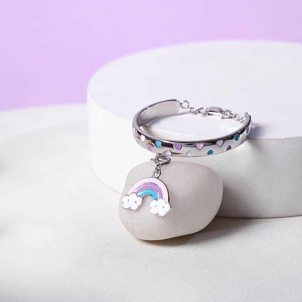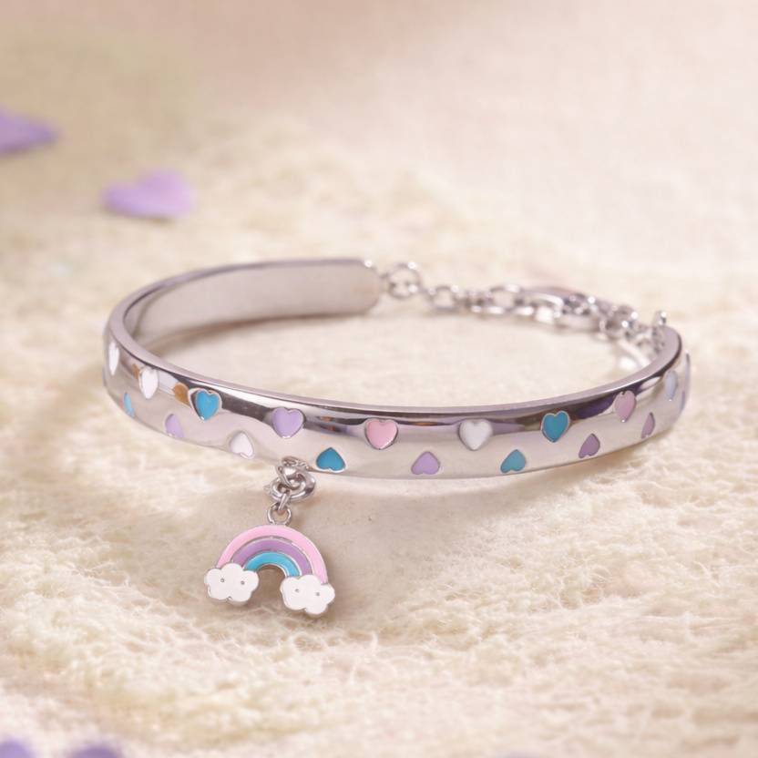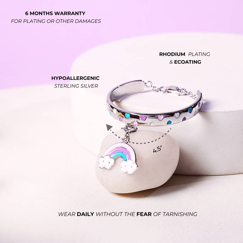 ShimmerTots925 Silver Hypoallergenic Newborn Rainbow Heart-Enamel Bangle
