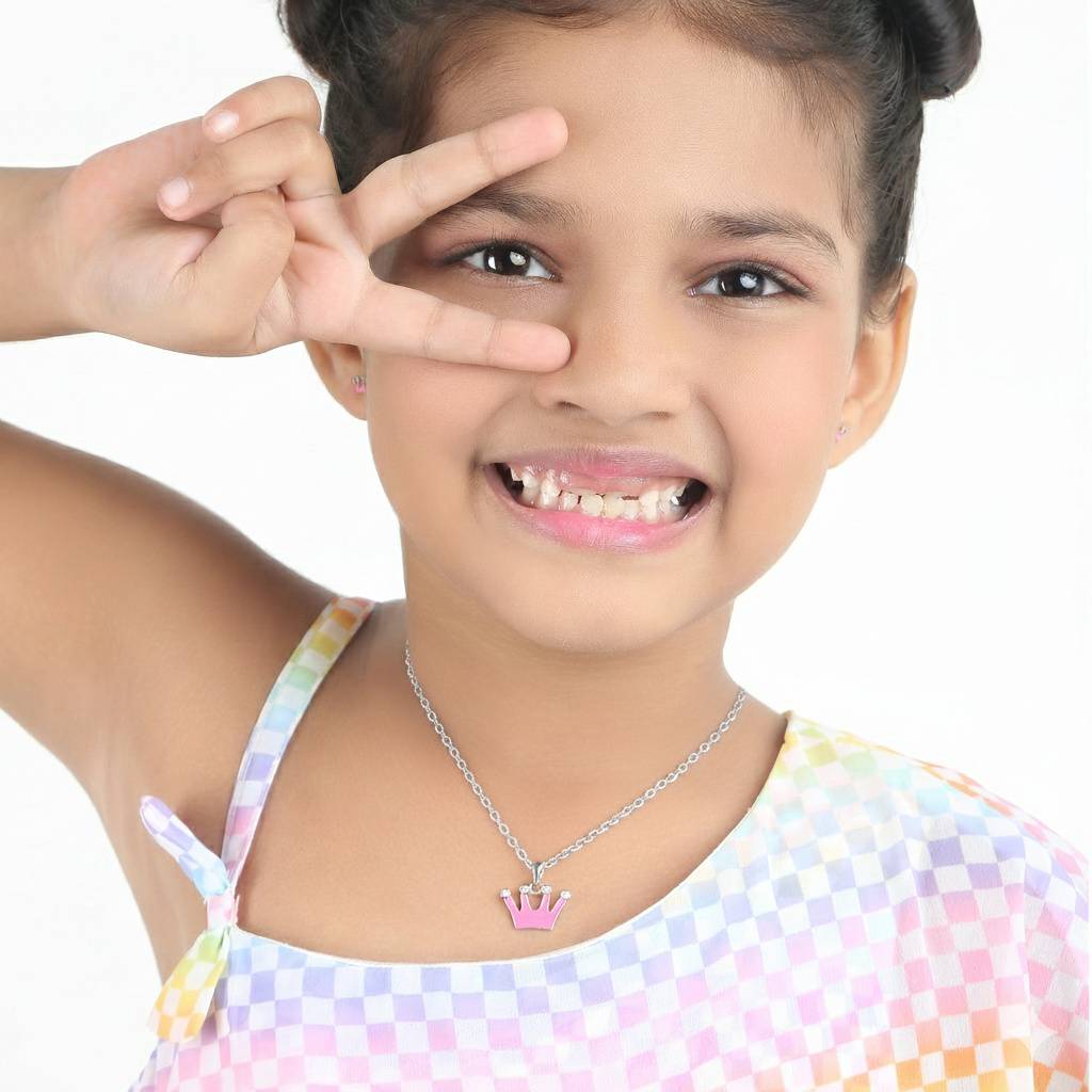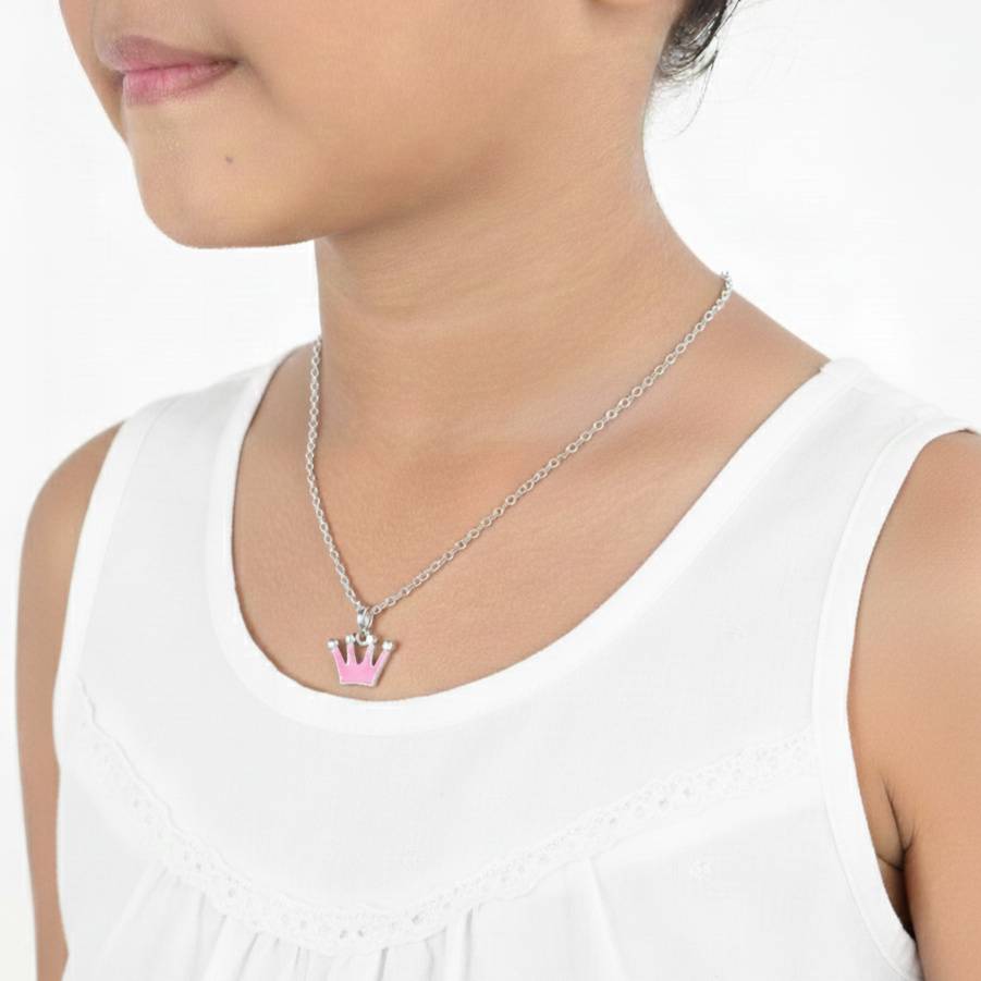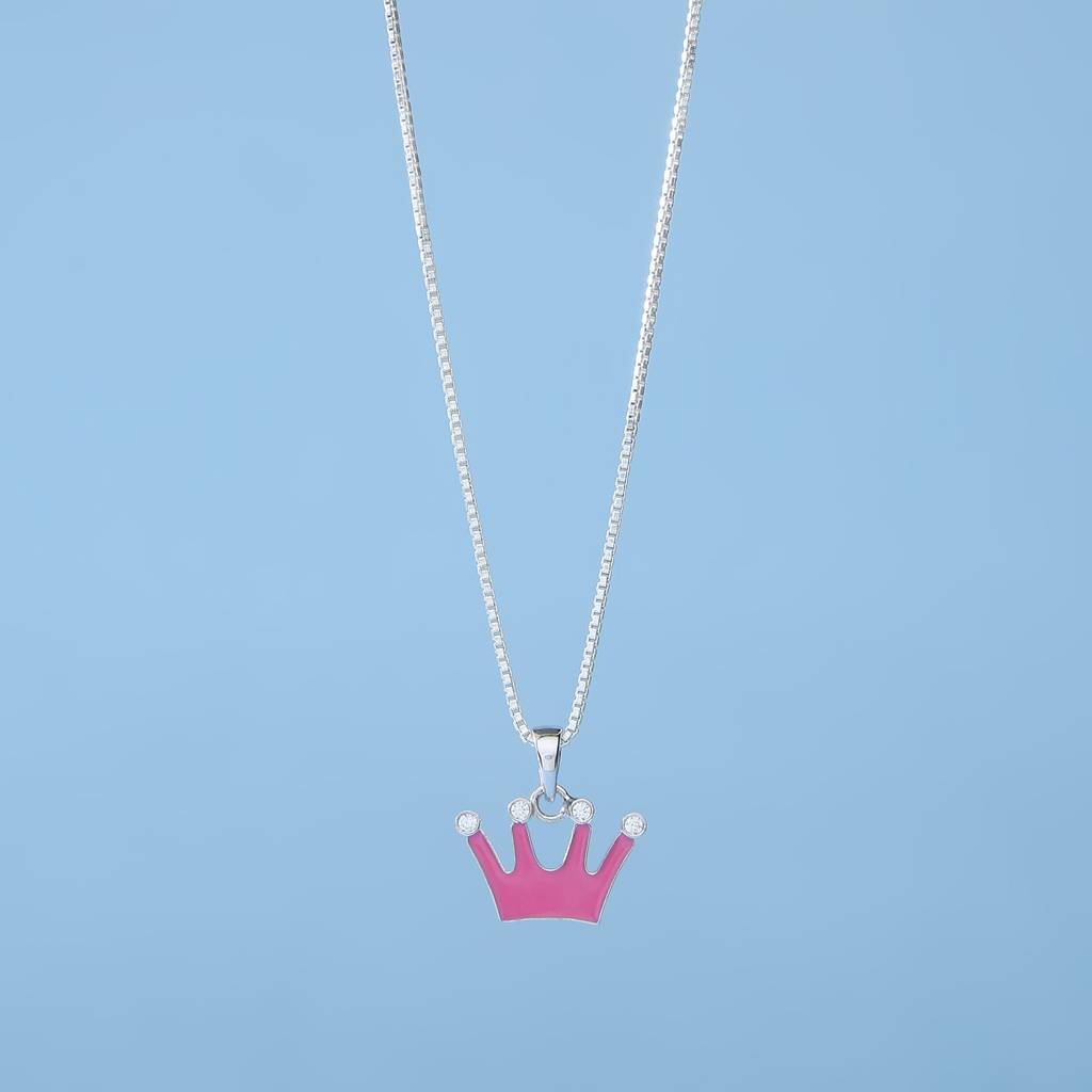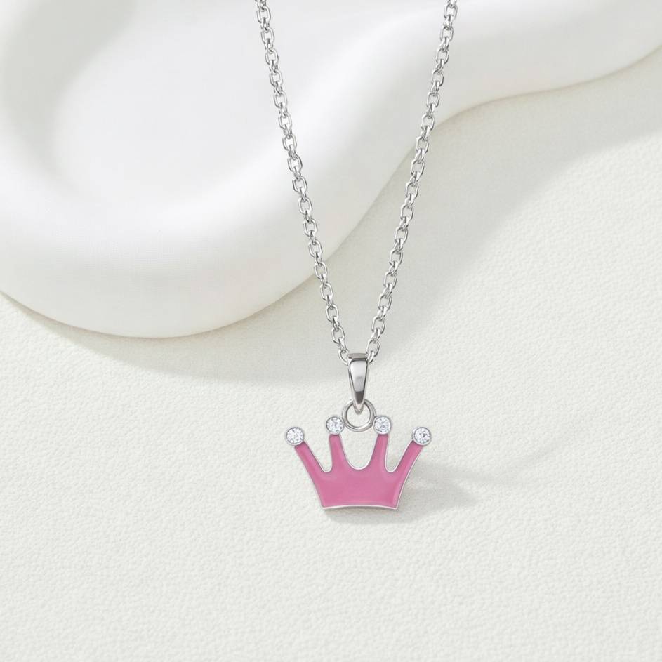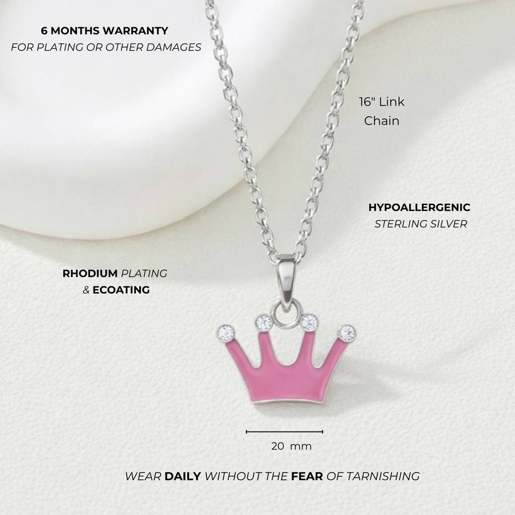 ShimmerTots925 Silver Hypoallergenic Pink Crown Pendant With Box Chain