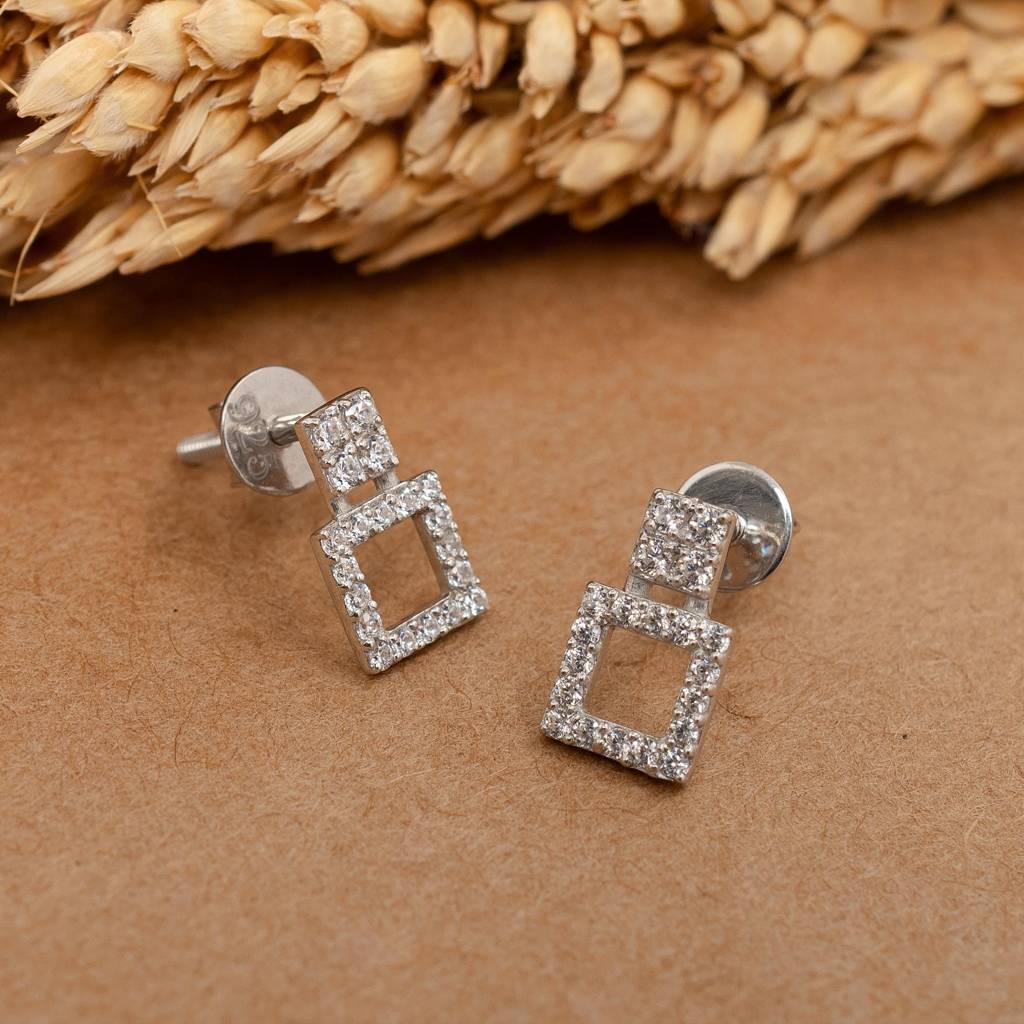 925 Silver Square Dangle Stud Earrings | Modern Drop Jewelry : SE_000828