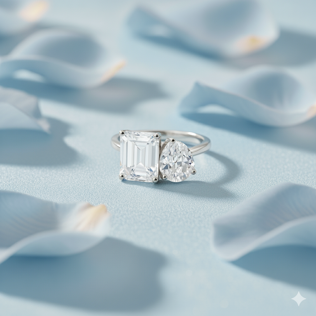 925 Silver Toi Et Moi Ring | Dual Stone 925 Silver Adjustable Ring For Women | Romantic Two-Stone Design : S-R-R-197