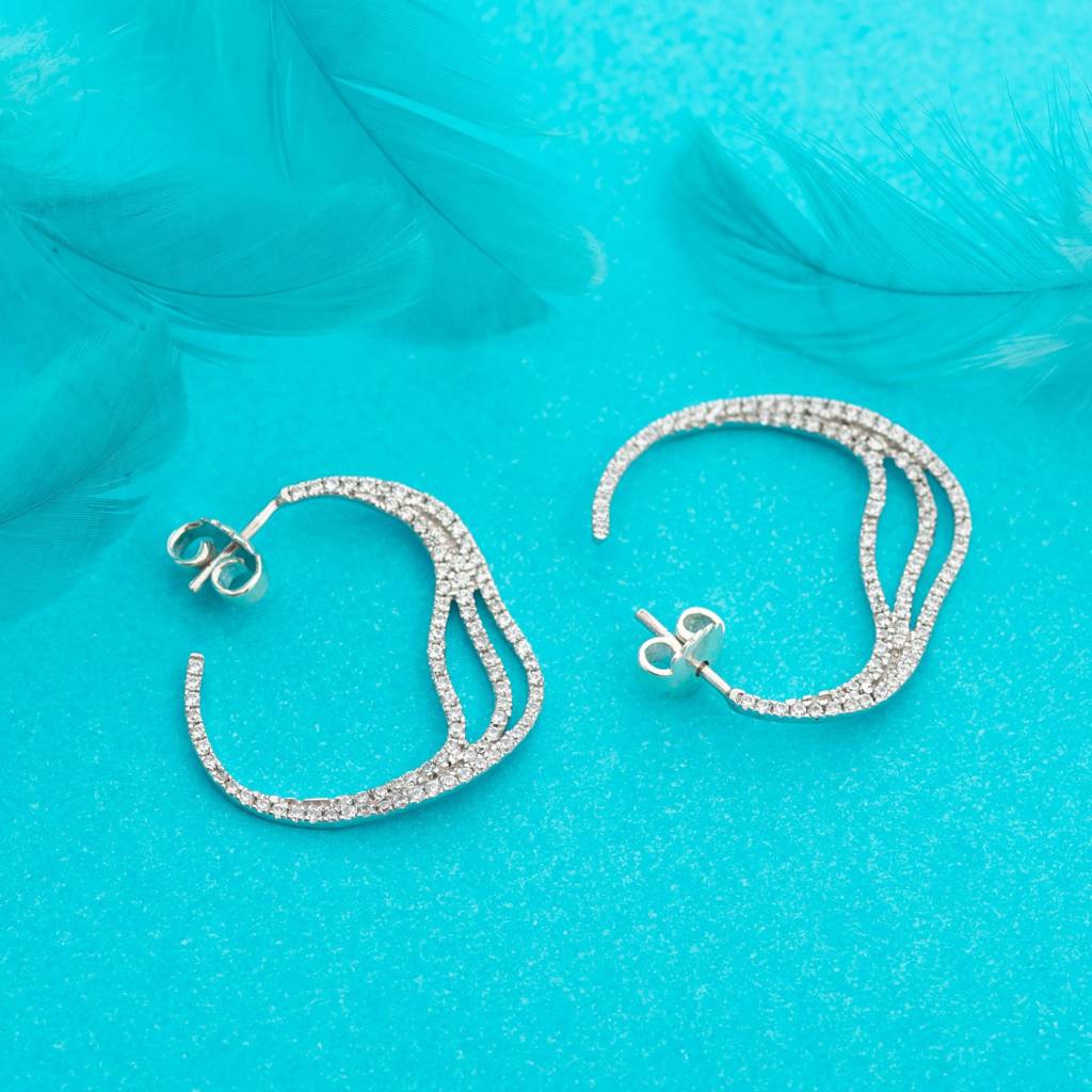 925 Silver Wave Hoop Earrings | Cz Curved Statement Hoops Party Jewelry Gift : SE_000702