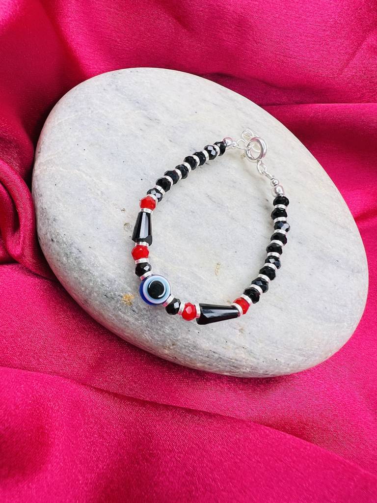 925 Sterling Silver Black And Red Beads Evil Eye Baby Bracelet : ARSBR18