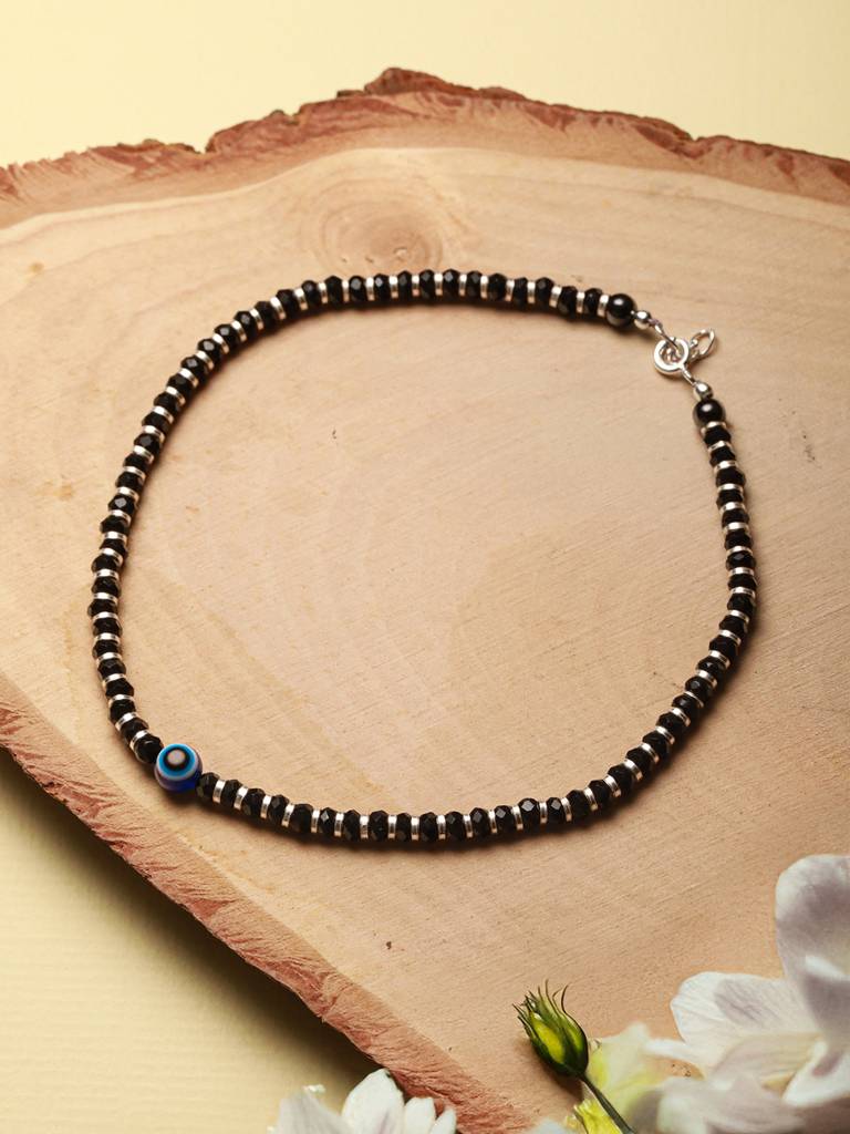 Saraf RS Jewellery925 Sterling Silver Black Beads Dailywear Minimal Anklet (One Size)