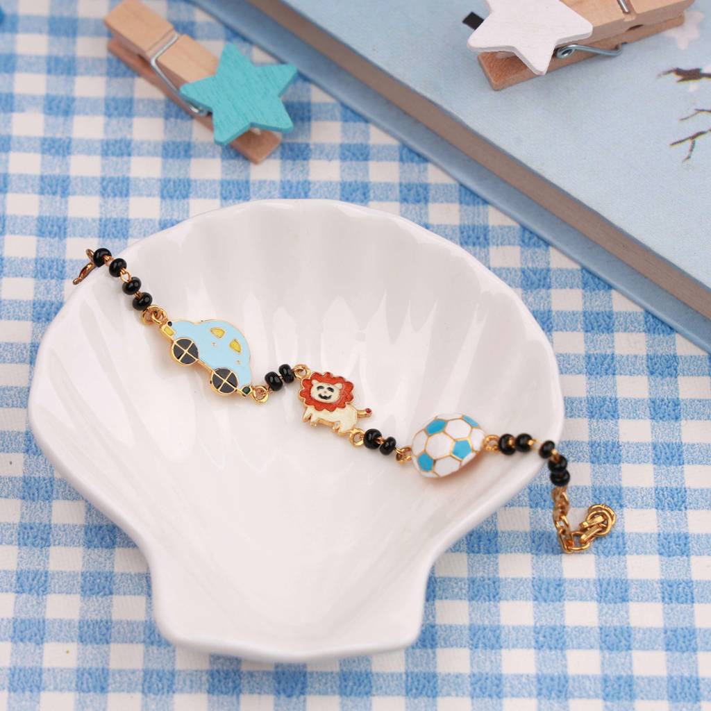 Elegante Kids925 Sterling Silver Car Lion Football Kids Nazariya Bracelet (Adjustable)