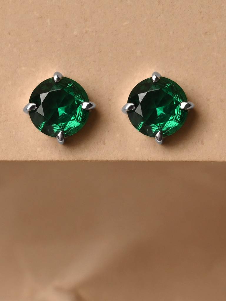Clara925 Sterling Silver Dark Green Minimal Daily Wear Studs Earrings For Kids & Girls (Onesize)