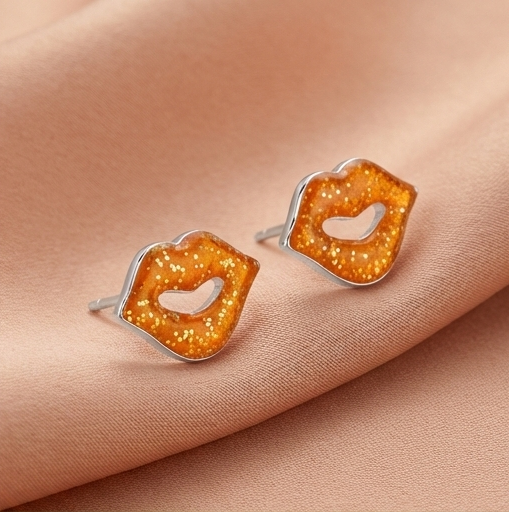 925 Sterling Silver Glitter Lips Stud Earrings Enamel Jewellery For Fashion Lovers : AG0202-221-5